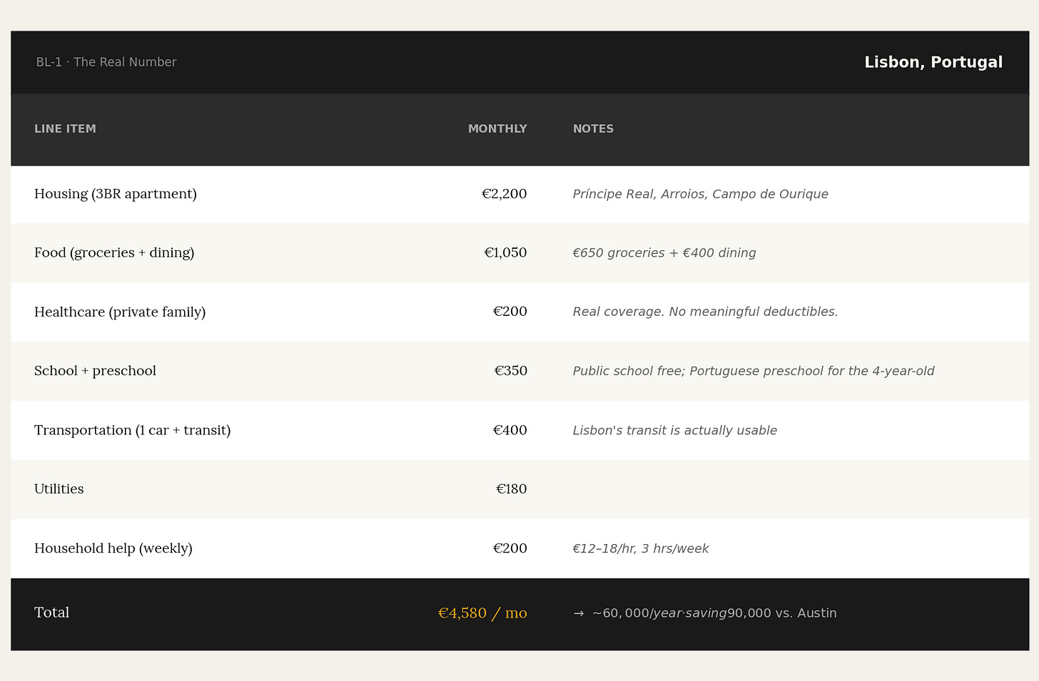 The same family. The same life — arguably a better one, in a city rated among the most livable in Europe, with a functioning public school, walkable neighborhoods, and healthcare that doesn’t require a financial risk calculus before every doctor’s visit.