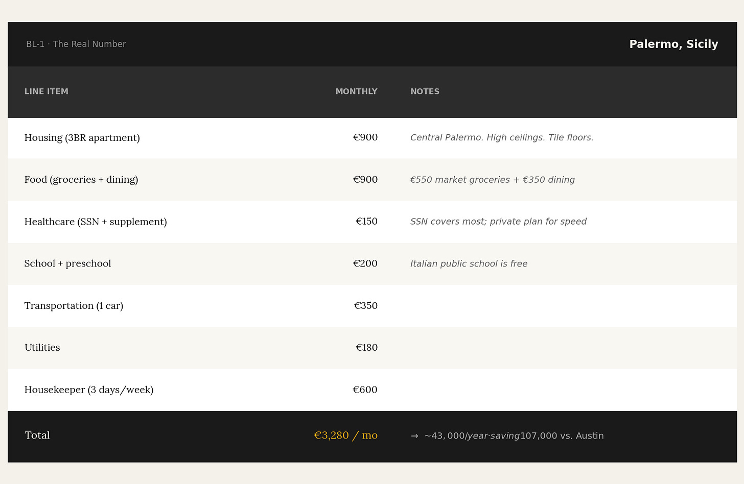 That household, in Austin, Texas, is spending its entire paycheck and then some. In Lisbon, the same household is banking $90,000 a year. In Medellín, more. In Palermo, even more than that.